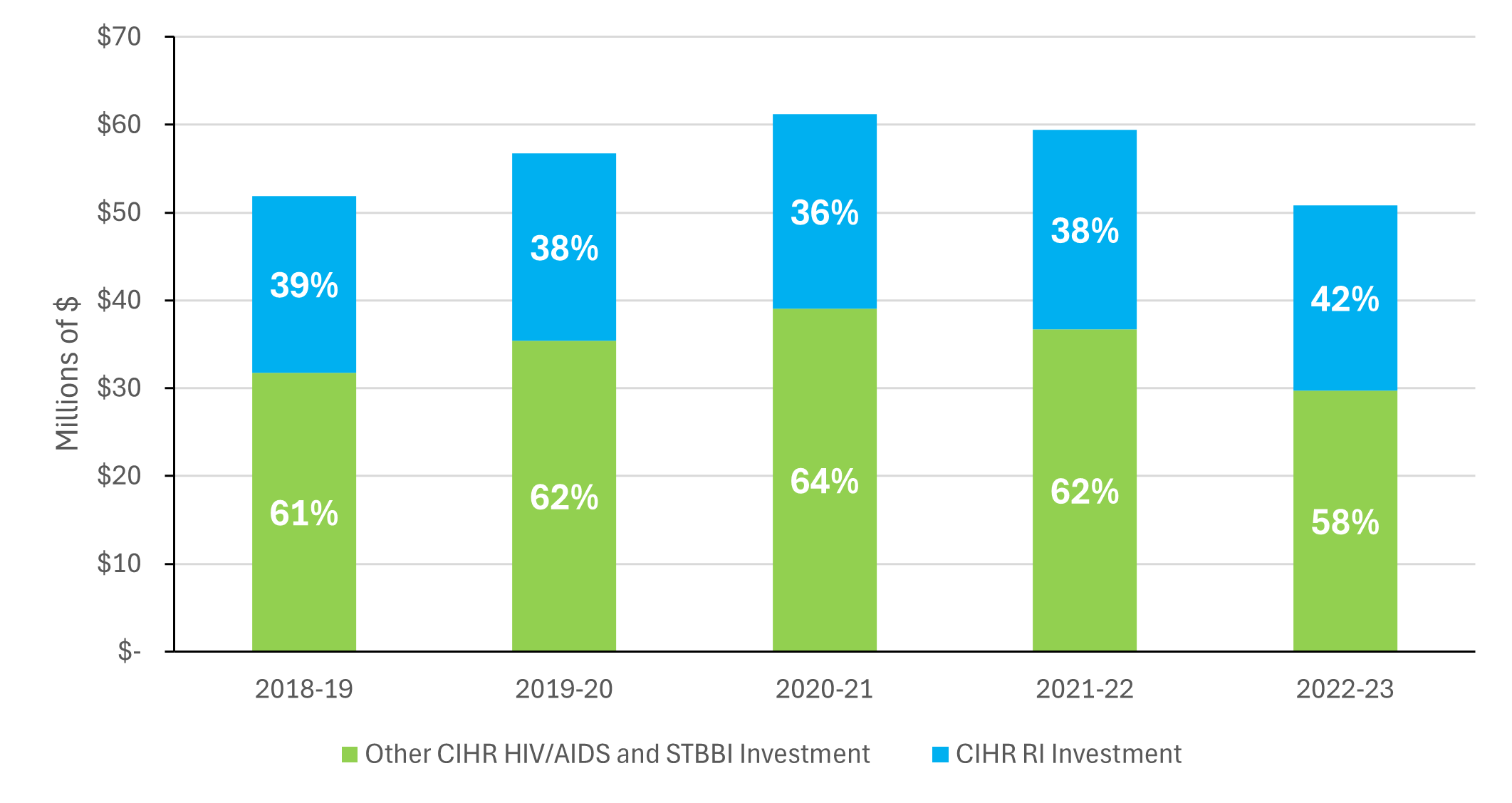 Figure 1 : Investissements des IRSC dans la recherche sur le VIH/sida et autres ITSS